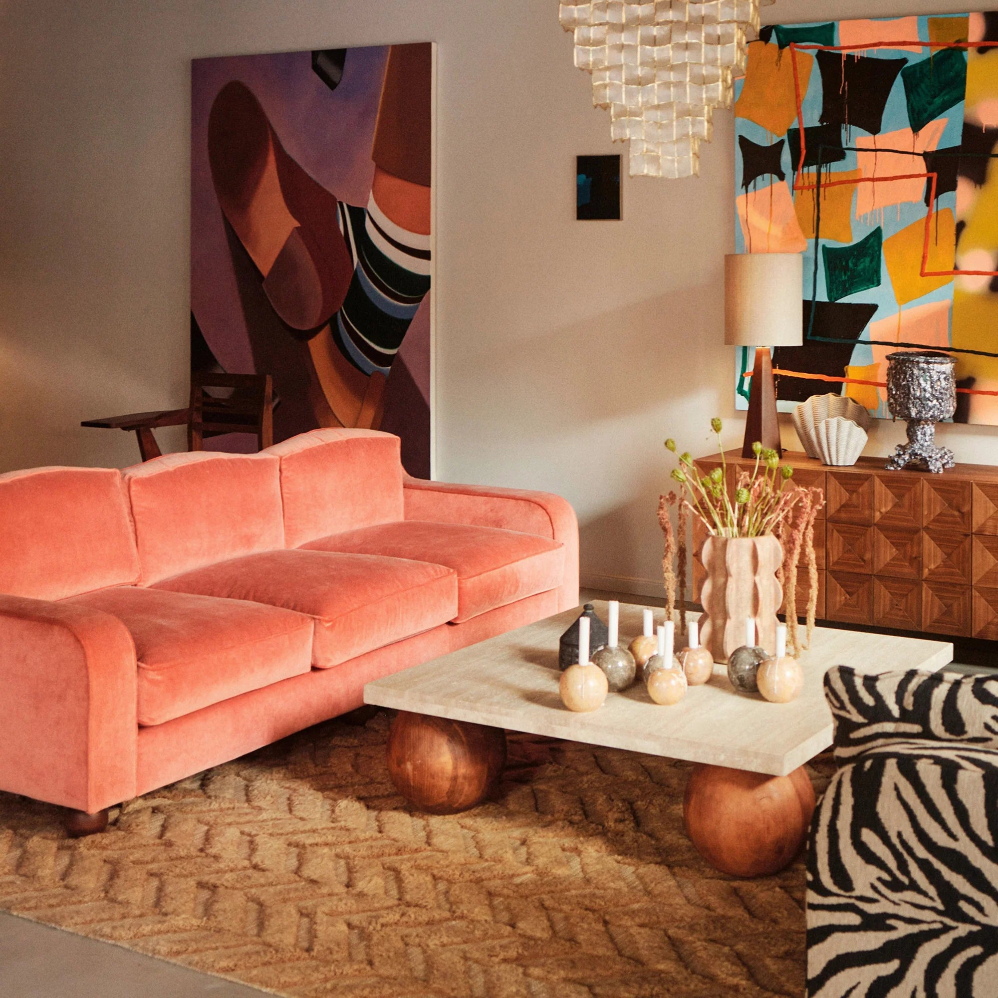 Sphere Square Sofa Table - Travertinmarmor - Dusty Deco