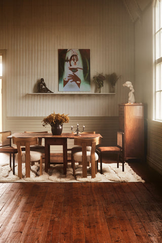 Alba-stolen blev født i et samarbejde med arkitektfirmaet Atelier Alba. Målet var at skabe den perfekte spisestuestol, der ville passe godt sammen med resten af Dusty Deco-kollektionen.