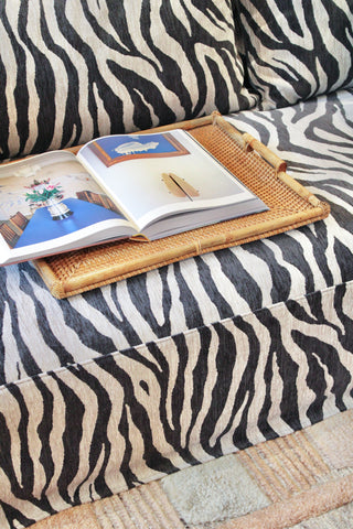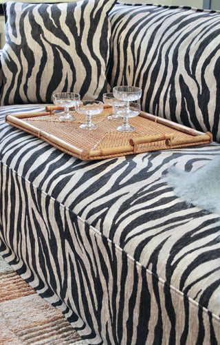 Stilfuld rektangulær bakke vævet med bambusfibre.