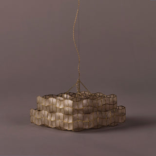Cornelia loftslampen er bygget i ni niveauer, hvilket giver den en uregelmæssig struktur, der fanger øjet. Den er lavet af messingmetal og capiz-skal, et naturmateriale, der gør hver lampe unik og bidrager til dens karakter og personlighed. Lampen kan placeres i mange forskellige miljøer, både moderne og klassiske. Et fantastisk dekorativt stykke, perfekt til at oplyse spisestuer, stuer eller gange.