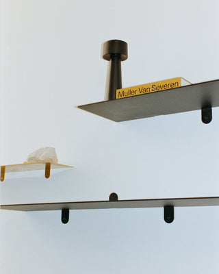 Med hylde n°1/2/3/4, en serie på fire stykker med varierende længder mellem 75 centimeter og to meter, tager Muller Van Severen hylden tilbage til sin blotte essens.