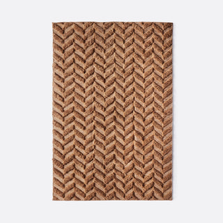 Herringbone Rug Brown er et håndvævet tæppe lavet af 100% uld. Tæppet har et tone-i-tone sildebensmønster i brunt. Ved at kombinere fladvævet stof og shaggy luv skaber mønsteret en særlig høj og lav effekt.