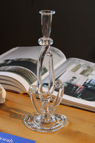 Håndlavet lysestage af danske kunstner og glaspuster Silje Lindrup. Lysestagen er mundblæst og har en organisk form. Hvert objekt er unikt.
