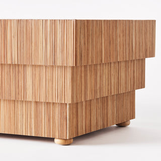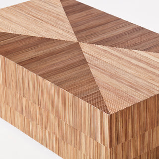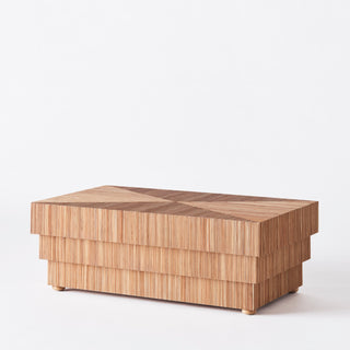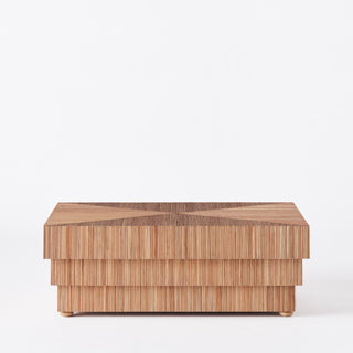 Mikado sofabord er et moderne sidebord med et vintage-look. Dets unikke design med lag på lag i en rektangulær struktur, lavet af naturlig rattan, hvor hvert lag varierer en smule i størrelse, tilføjer et strejf af moderne vintage til ethvert rum. Bordpladen fremviser et iøjnefaldende geometrisk mønster, der fremhæver en dynamisk visuel detalje. Et unikt sofabord, perfekt til placering midt i en stue eller lounge.