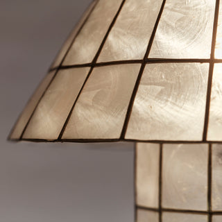 Cornelia bordlampe er lavet af capiz-skal, der giver materialet en uregelmæssig struktur. Naturmaterialet er noget af det, der gør hver lampe unik og bidrager til dens karakter og personlighed. Lampen kan placeres i mange forskellige miljøer, både moderne og klassiske. Brug den som en dekorativ indretningsdetalje på bogreolen eller ved siden af sengen som sengelampe.