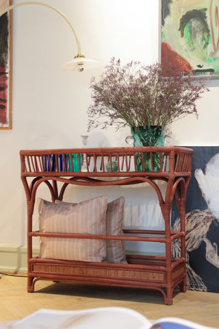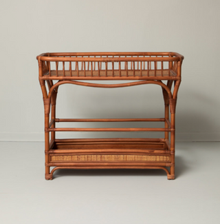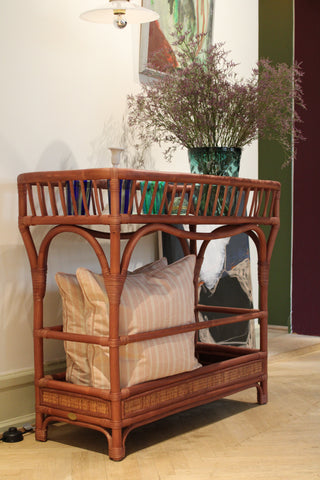 Stilfuld barvogn i rattan i smuk brunrødlig farve.