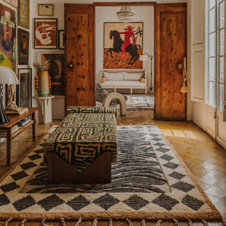 Wildcat-tæppet i askesort er et sandt statement-tæppe, der er opstået i samarbejdet mellem Dusty Deco og den berømte designer Matthew Williamson. Med sine kontraster i farver og struktur er Wildcat-tæppet et iøjnefaldende tæppe, der øjeblikkeligt løfter dit rum.