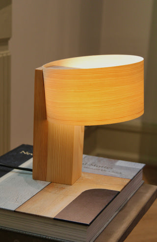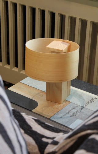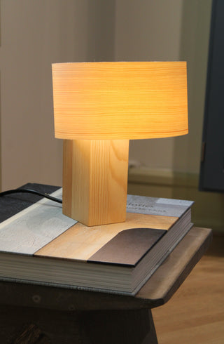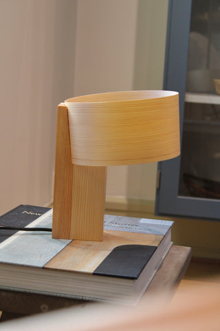 Vaarniis Hoop bordlampe er en lampe med massiv fyr og fint finer, der står i kontrast til hinanden. Den massive træbase er et naturligt robust anker, der holder alt fast på plads. Et minimalistisk bånd af fyrretræsfiner fungerer som en skærm, der filtrerer lyset blødt.